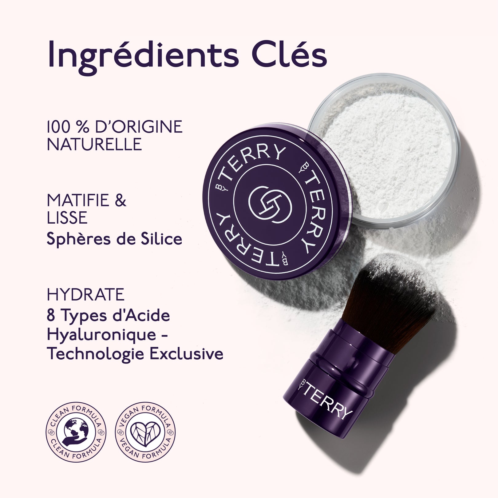 Poudre libre de finition ultra soin. Matifie la peau et floute les imperfections instantanément. Transparente. Non desséchante. Contient 8 types d’acide hyaluronique. Formule d’origine 100% naturelle, clean et vegan.