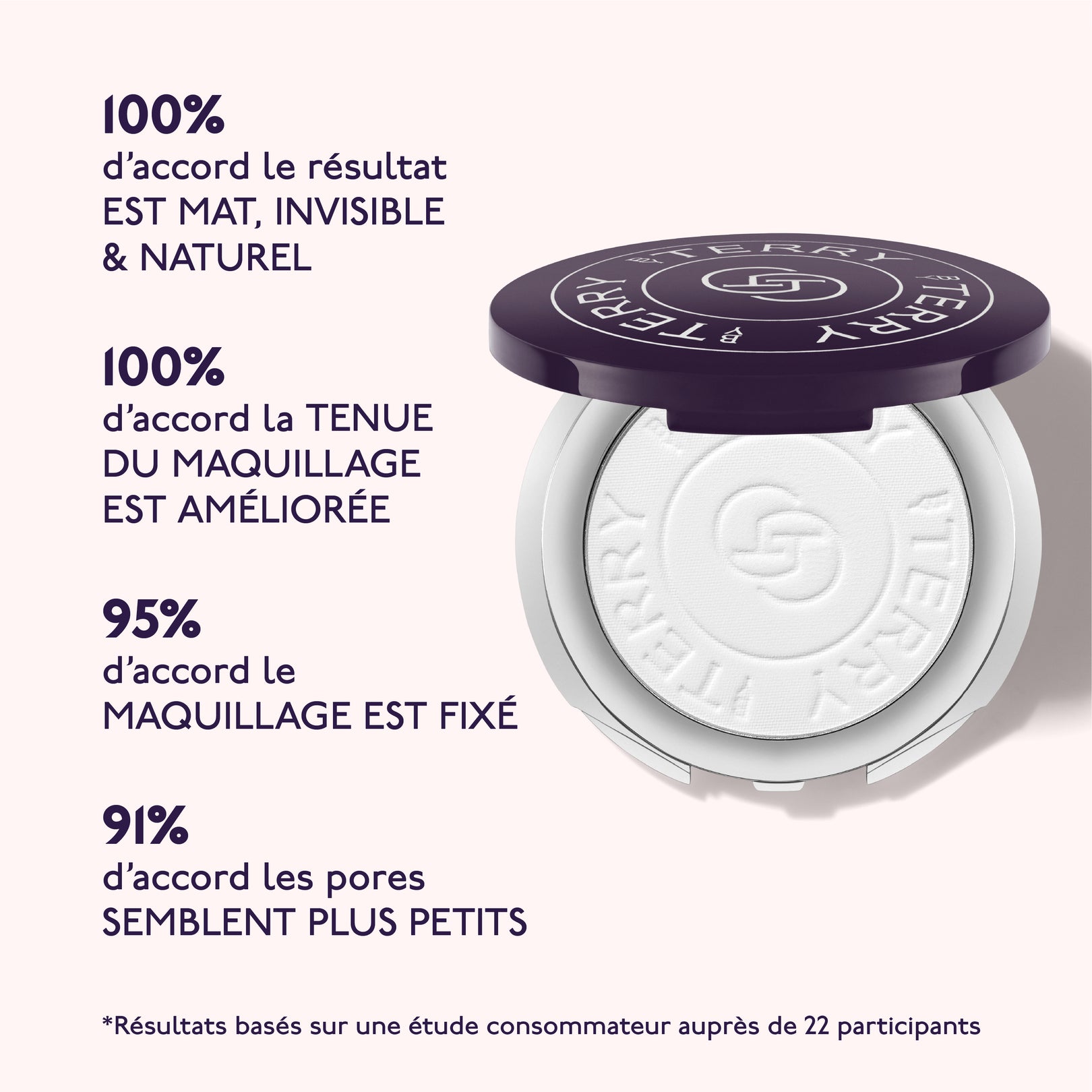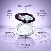 Cette poudre pressée translucide fixe, matifie, estompe les imperfections, comble les pores, les ridules et les rides de la peau sans couvrir et sans dessécher la peau. Les huiles sont contrôlées tout en gardant à la peau son éclat naturel, imitant un fini semblable à celui de la peau.