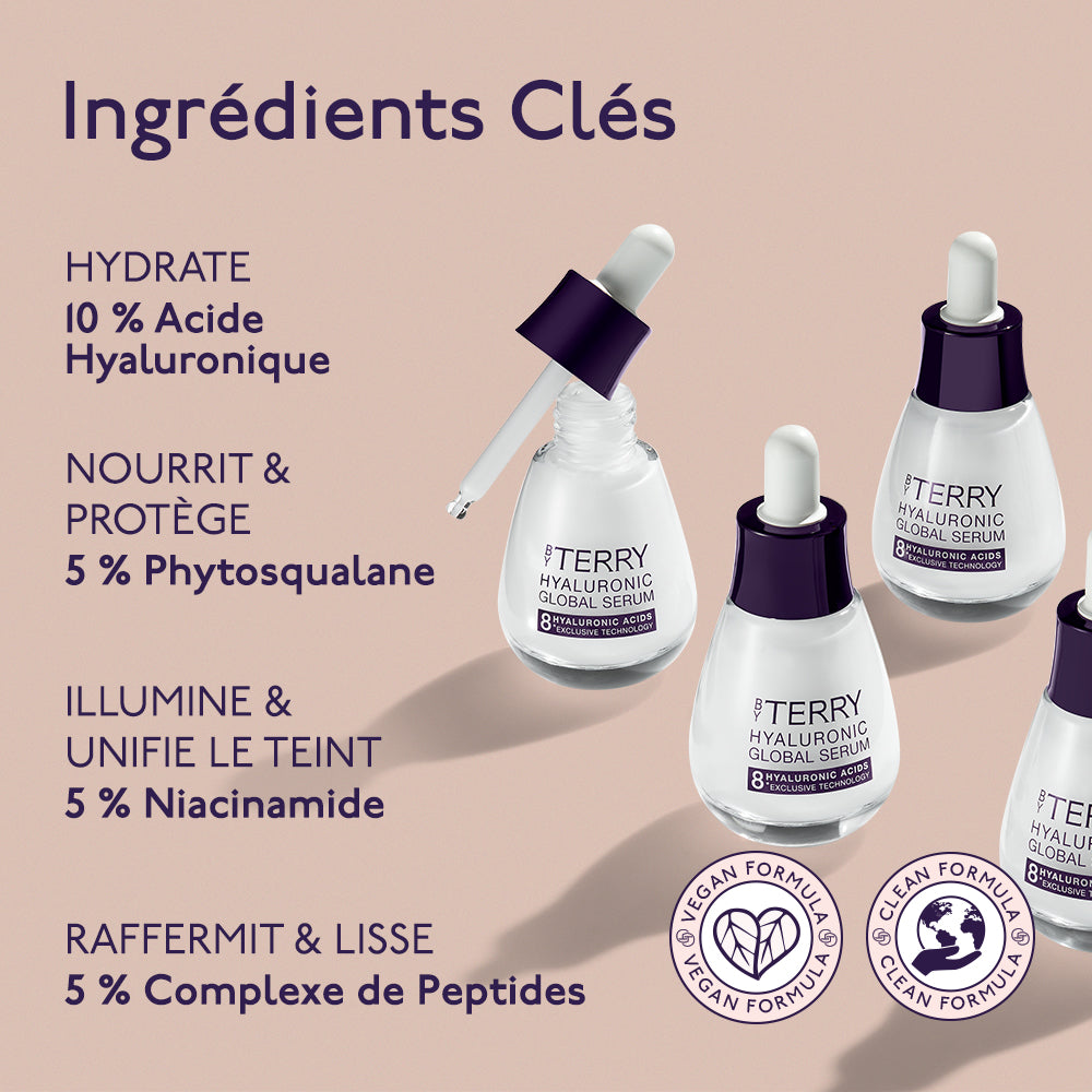 Grâce à sa technologie exclusive composée de 8 types d’acides hyaluroniques (10%) de 3 poids moléculaires différents, la formule assure une hydratation multi-couches en 3D de la peau avec une action immédiate en surface et persistante en profondeur.