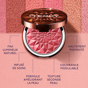 Blush poudre hydratant et infusé de soins. Couvrance modulable : d’un flush naturel à une finition intense. Formule protectrice et nourrissante. Clean et vegan. Texture ultrafine et confortable, effet seconde peau. Convient à tous les types de peau.
