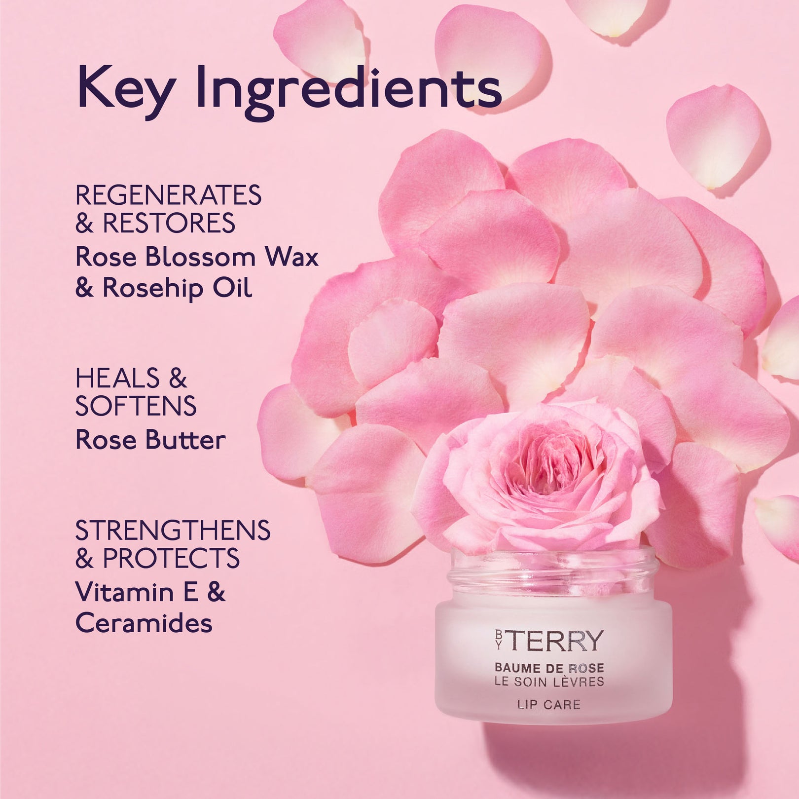Intensely nourishing lip balm. A cult-classic. Concentrated rose blend formula. Protects all-year round. Fuller, plumper lips.