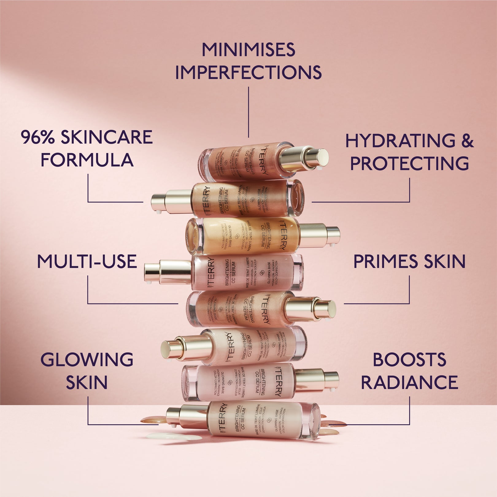 Enriched with radiant rose stem cells, BRIGHTENING CC SERUM boosts radiance and adds protection to the skin. ‘Optical glow' technology mixes light-reflecting prisms, soft-focus micro-spheres and color correcting pigments.