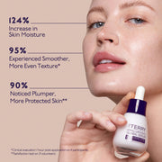 - The medium-molecular-weight Hyaluronic Acid plumps the skin and provides a smoother skin surface.